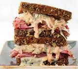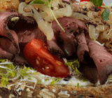 Oppskrift på brødskive med pepperroastbiff og løkmarmelade